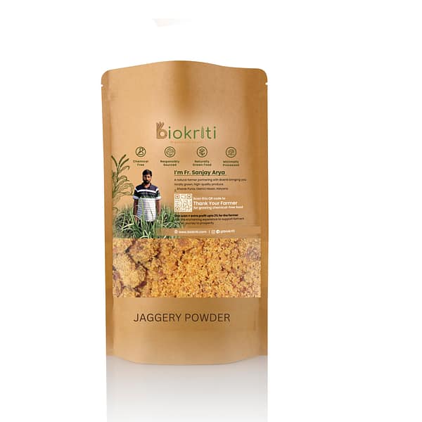 Grown and sourced sustainably, Biokriti range of grocery does not involve chemicals at any stage of farming or processing. Experience Biokriti for a healthy and nurtured you! Natural, chemical-free, colour-free jaggery powder