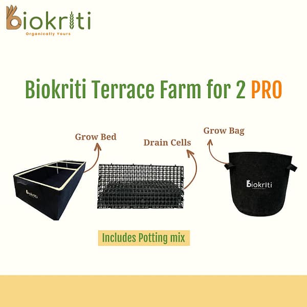 Introducing the Biokriti Terrace Farm for 2 People – Grow a thriving garden in limited urban spaces. With durable construction, space optimization, and an efficient watering system, enjoy the rewards of homegrown produce and a sustainable lifestyle. Start your urban farming journey today.