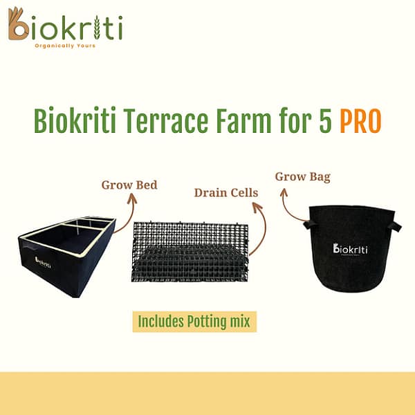 Introducing the Biokriti Terrace Farm for 5 People – Grow a thriving garden in limited urban spaces. With durable construction, space optimization, and an efficient watering system, enjoy the rewards of homegrown produce and a sustainable lifestyle. Start your urban farming journey today.